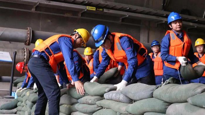 ▲ 長江電力溪洛渡電廠青年突擊隊員緊張有序地開展防汛演練