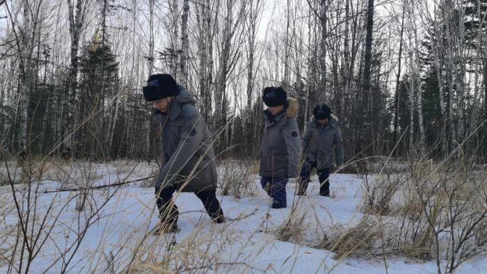 ▲ 三峽能源黑龍江分公司青年運維團隊成員踏雪做好線路巡視