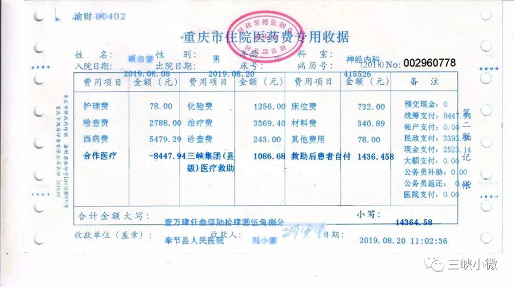 原來,在巫山、奉節(jié),貧困患者完成“一站式”結算時,會在“扶貧醫(yī)療救助明白卡”或者收據(jù)單據(jù)上發(fā)現(xiàn)一欄“三峽集團健康扶貧醫(yī)療基金”/“三峽集團(縣級)醫(yī)療救助”。這是三峽集團為建檔立卡貧困人口提供的“兜底”保障。建檔立卡貧困人口到縣內(nèi)定點醫(yī)療機構住院就醫(yī)產(chǎn)生的醫(yī)療費用,通過‘五重保障’減免報銷后,如果還有超過總費用10%的錢需要繳納,超出的部分就由三峽集團提供的基金金兜底救助,確保患者自付比例控制在總費用的10%以內(nèi),大大減輕了貧困患者的經(jīng)濟負擔。