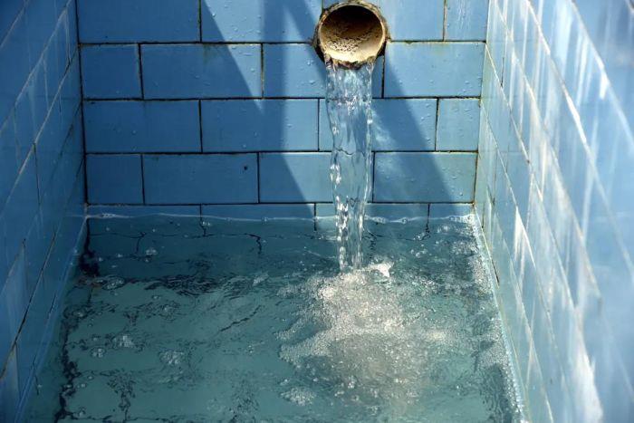 ▲羅塘鄉污水處理站出水口,經過處理后的污水清澈透亮。攝影:向珊